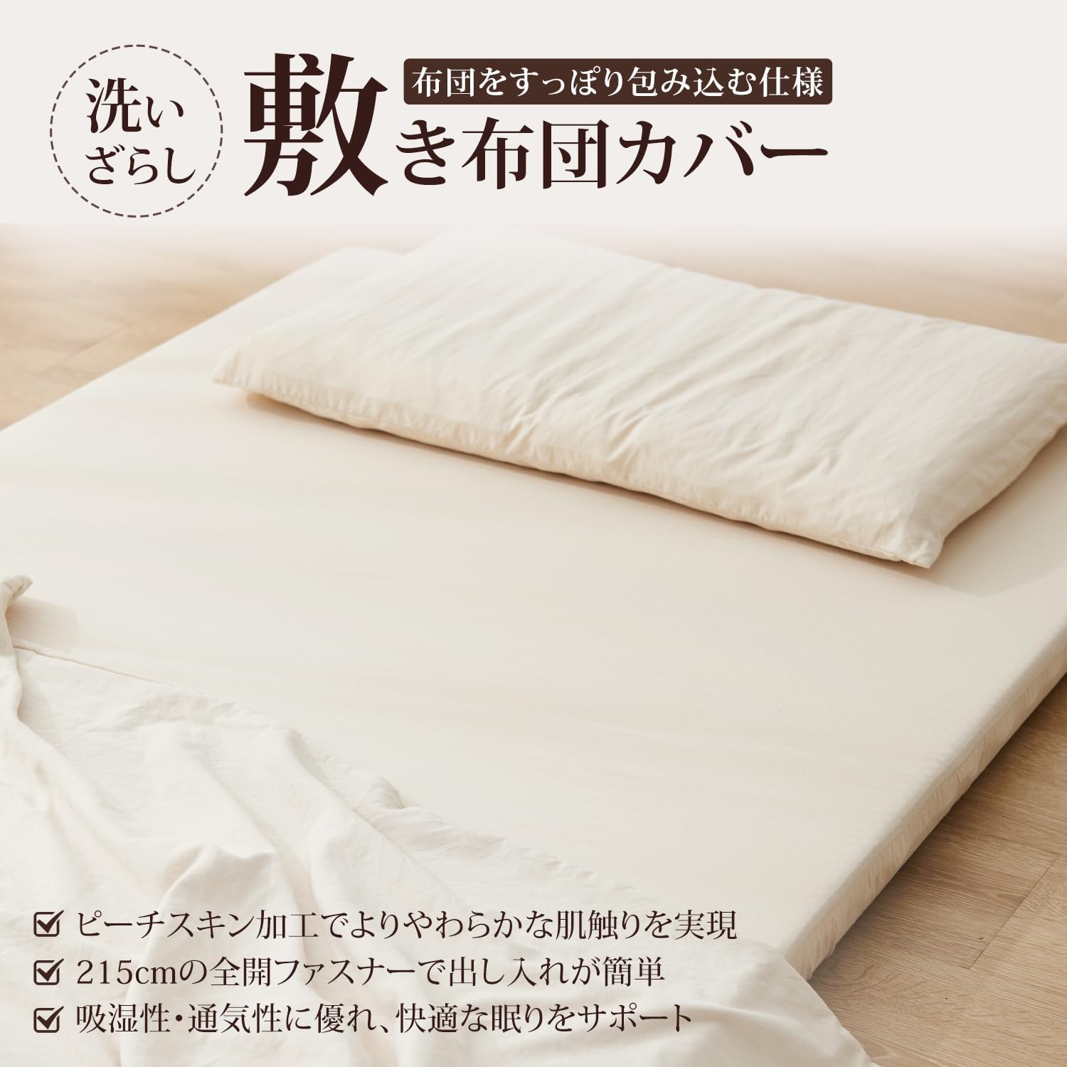 敷き布団カバー 洗いざらし ピーチスキン加工 吸汗速乾